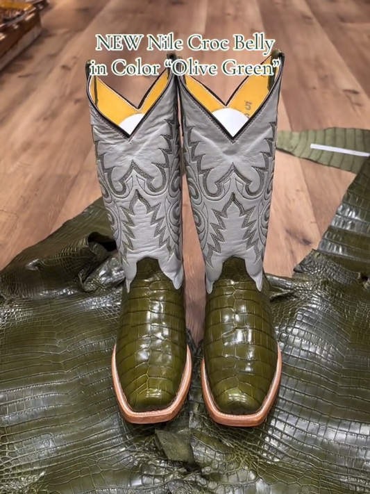Nile Croc Belly Skin Boots In Color “Olive Green”