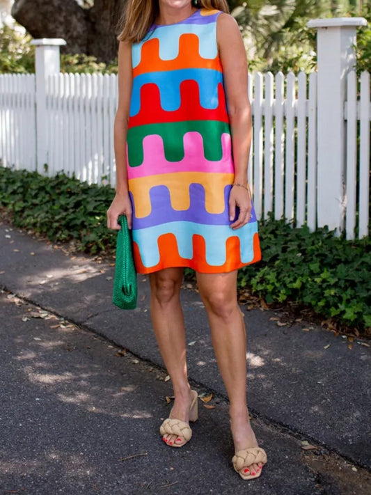 Placement Print Sleeveless Mini Dress