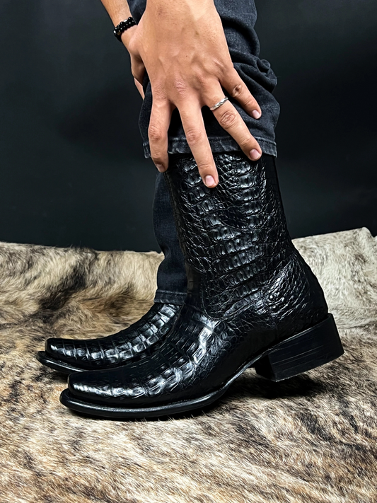 Hand-Woven Cowhide Zipper Cowboy Boots